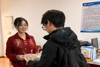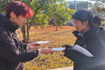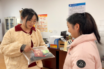 与此同时,学院心理工作站成员携部分加油包与祝福明信片,前往逸夫图书馆各楼层自习区。工作人员轻声行走于座位间,将一份份承载着关怀的物资递到正在专注复习的考研学子手中,并在不打扰学习的前提下,与部分同学进行简短交流,了解他们的备考状态与实际需求。此外,部分考研加油包也通过各班级辅导员,转交至因实习、校外住宿等原因未在校内的考研学生手中,确保关怀覆盖到更多人。