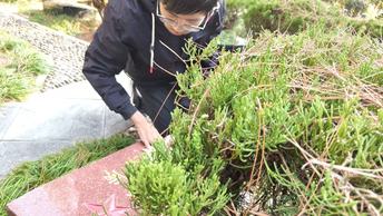 鞠躬祭扫仪式结束后,同学们手持抹布、扫帚等工具,分组开展陵园义务打扫工作。大家分工协作,有的仔细擦拭烈士墓碑上的灰尘,让烈士的名字在阳光中愈发清晰;有的清扫陵园步道的落叶与杂物,有的整理纪念碑周边的绿植。劳动过程中,同学们神情专注、动作认真,以实际行动践行对先烈的缅怀之情。